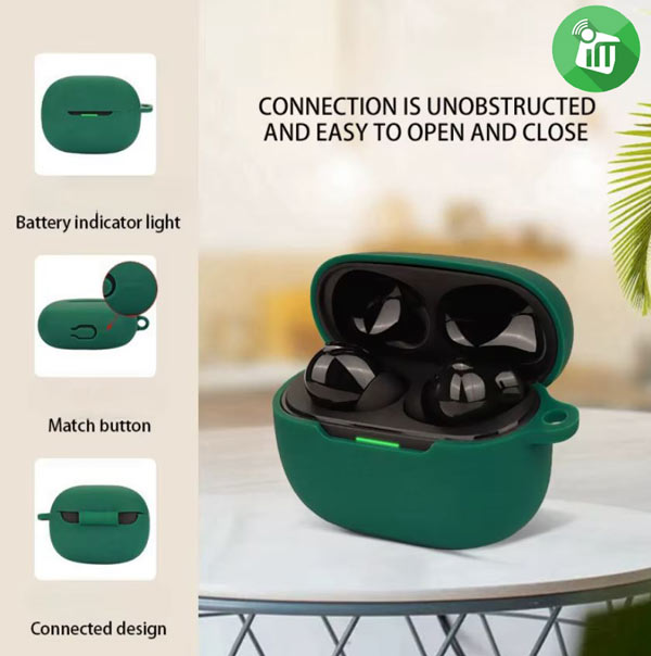Pocket  Made of flexible, impact-resistant silicone material with dustproof, smooth surface and easy to clean easy to use. You can easily open or close the lid manually. It can well protect your device from scratches, bumps, dust and damage has a cutout that allows you to charge the headset without removing the cover