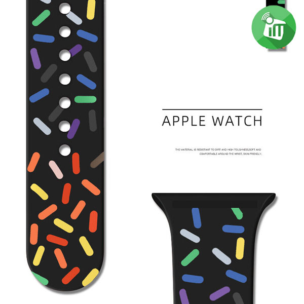 Rainbow iWatch 41mm Made from a custom high-performance Soft Silicone , the Sport Band is durable and strong, yet surprisingly soft The installation is simple and the size can be adjusted according to the circumference of the wrist Each B strap features a unique, stretchable design that’s ultra-comfortable and easy to slip on and off your wrist. Created by weaving 16,000 recycled polyester