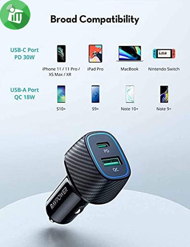 RAVPower RP-VC009 PD Pioneer 48W 2-Port USB Car Charger
