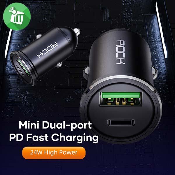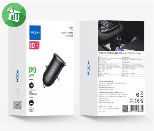 Rock H13 Dual Port A+C 20W Fast PD Car Charger