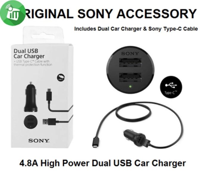 Sony AN430 Dual USB Car Charger 4.8A With USB Type-C Cable