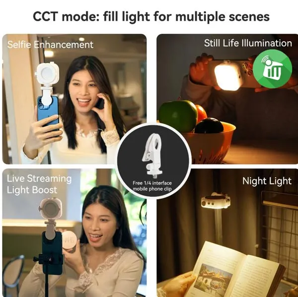 With a phone light clip, it can be easily clipped on most mobile phones. Compatible with all smartphones, tablets, laptops, etc. The portable selfie light is perfect for creating high-quality live videos on popular social media platforms such as Facebook, YouTube, TikTok, etc., and for selfies, makeup, live broadcasts, etc. This shooting light is only pocket-sized, and you can easily carry it wherever you go, helping you solve photography problems at any time. Built-in 1/4″ Thread compatible with the cameras or DSLR Camcorder recording(required extra 1/4″ cold shoe mount)
