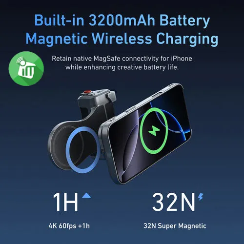 Battery anxiety kills creativity. Master Grip includes an integrated 3,200mAh battery so you can keep rolling without hunting for outlets. MagSafe wireless charging for iPhone 17 Pro / Pro Max