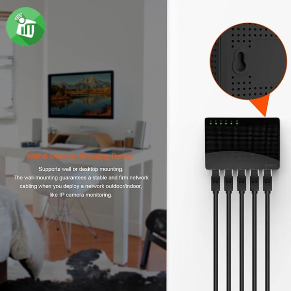 Tenda SOHO Gigabit switches are nice and small and won’t take up much desk or floor space. With desktop or wall-mounting design, you can put Tenda SOHO Gigabit switches anywhere you want and move flexibly. They come in a pretty dome-shaped pattern Plastic case. They will fit equally well in any desktop decor. Not only for Wired network use, but also for a homet