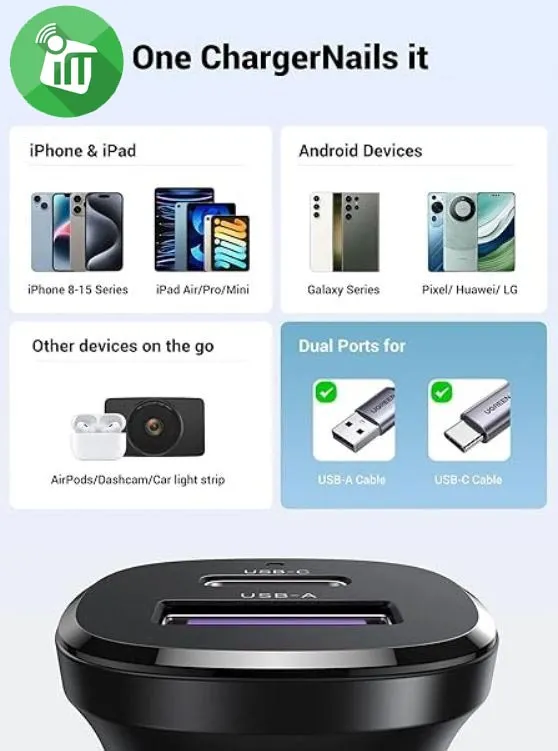 UGREEN EC305 30W is compatible with most USB powered devices such as iPhone 15 Pro/15 Pro Max/15/15 Plus, iPhone 14/iPhone 14 Pro/iPhone 14 Pro Max/13 Pro Max/12 Pro/12 Pro Max/ 11 /XS/XR/X/8, New iPad 9, iPad mini 6, iPad Pro/iPad Air, Samsung S24/S23/S22/21+/S20/S10, Nintendo Switch, Tomtom Satnav Garmin SatNav, etc. Supporting 12V-24V voltage, USB Car Charger works with most cars/trucks/vans such as Mercedes-Benz, Ford, Audi, Porsche, Lamborghini, BMW, etc