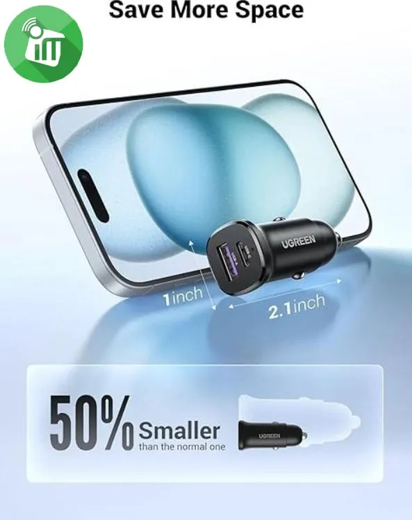UGREEN EC305 Fast USB-A/PD Car Charger 30W