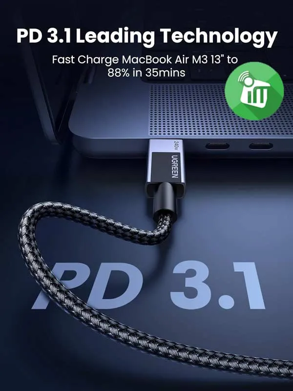 Crafted with premium materials and reinforced connectors, the UGREEN 240W cable is built to withstand bending, pulling, and daily wear — ensuring maximum durability and a longer lifespan