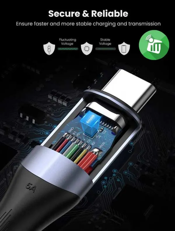UGREEN US355 5A (1M) The security of your devices is a priority. With the Ugreen US355 cable you can be sure that charging and data transfer are stable and safe. Advanced technology guarantees protection against surges and other hazards, making this cable not only an efficient but also a safe choice.