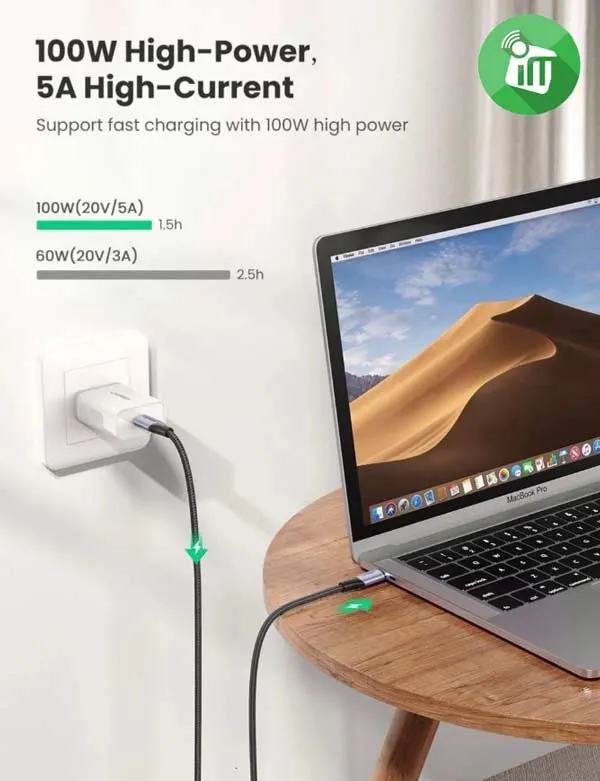 Thanks to support for Power Delivery 100W and Quick Charge 4.0, the Ugreen US355 cable can quickly charge your devices. Imagine your laptop or smartphone reaching full power in the blink of an eye. You will save so much time!