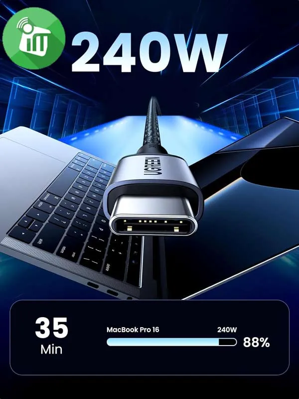 Crafted with premium materials and reinforced connectors, the UGREEN 240W cable is built to withstand bending, pulling, and daily wear — ensuring maximum durability and a longer lifespan