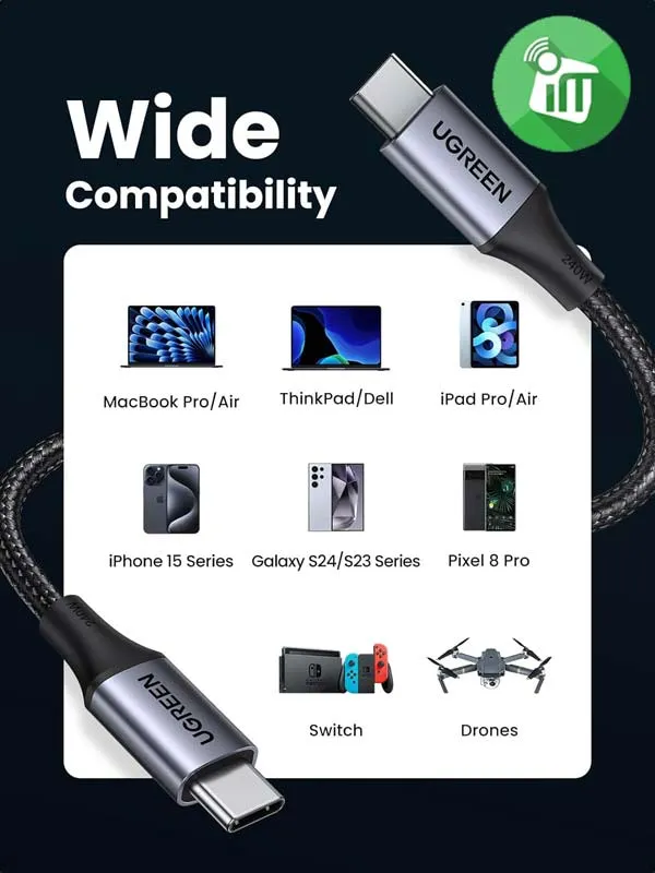 UGREEN US535 USB-C 1M Perfect for all USB-C devices, including MacBook Pro, iPad Pro, Dell XPS, Steam Deck, Galaxy S Series, and more. Whether for work or travel, it’s the one cable that powers them all