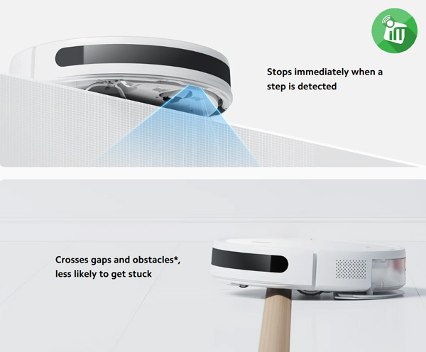 The built-in sensors* provide flexibility to handle complex home environments and ensure worry-free cleaning.