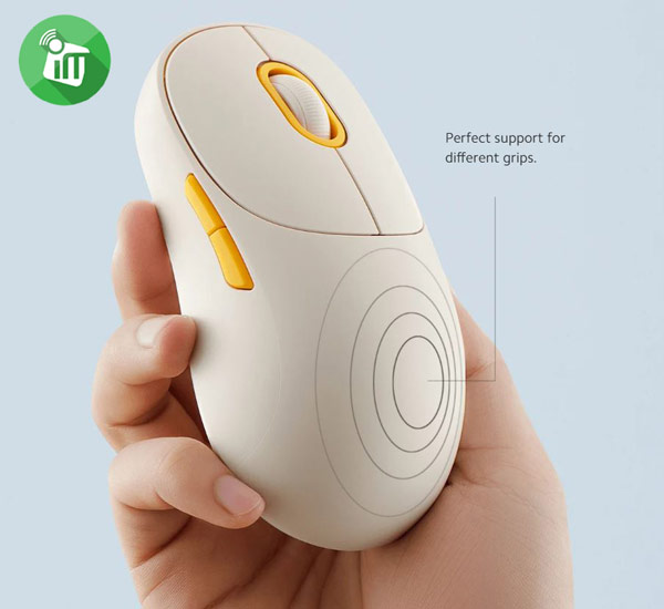 with seamless multi-device connection. The mouse provides one 2.4GHz wireless connection channel and two Bluetooth channels, allowing pairing with up to 3 devices. Switch among them quickly and simply by pressing the function button at the bottom