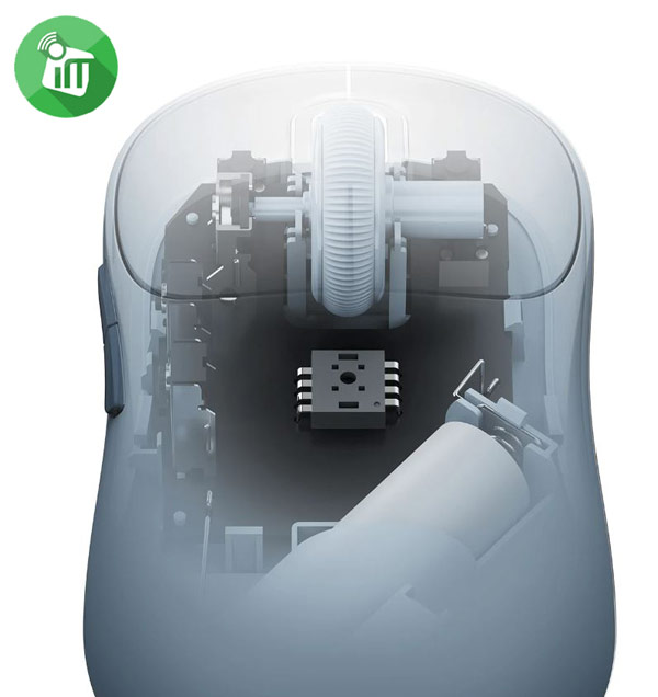 The mouse’s carefully designed and crafted ergonomic curves fit perfectly in your hand. The smooth outer surface facilitates a comfortable grip