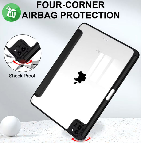 Full around soft TPU frame with built-in air-cushion in all corners, and Honeycomb back shell design, which provides excellent protection to all sides of your precious device from accidental falls or drops with faster heat dissipation. 0.8mm raised bezel design provides extra protection for tablet screen glass and camera while showing out your iPad’s classic design and true color; 0.8mm raised bezel design provides extra protection for tablet screen glass and camera