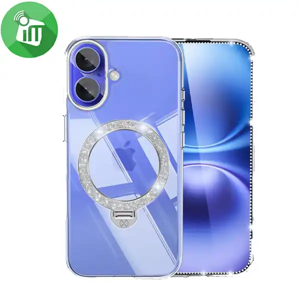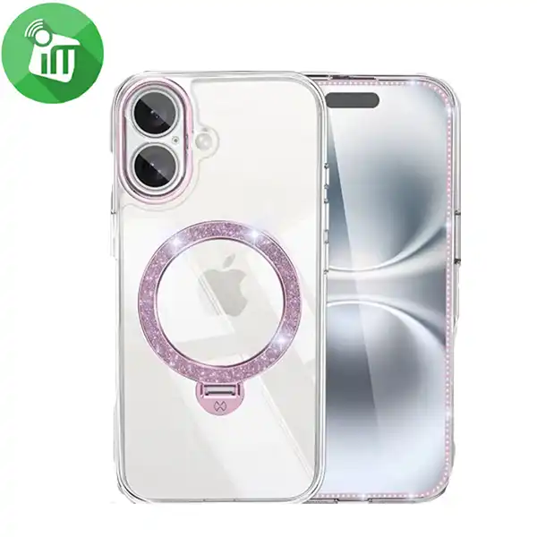exclusively for the iPhone 16. This premium case blends sophistication, functionality, and durability to give your device the perfect balance of beauty and defense. The transparent body allows the natural color of your iPhone to shine through, while the sparkling metallic ring holder adds a glamorous touch.