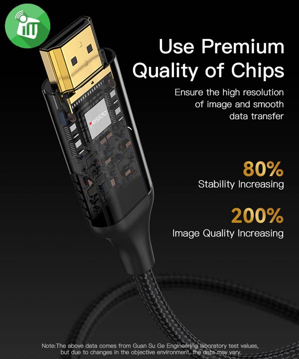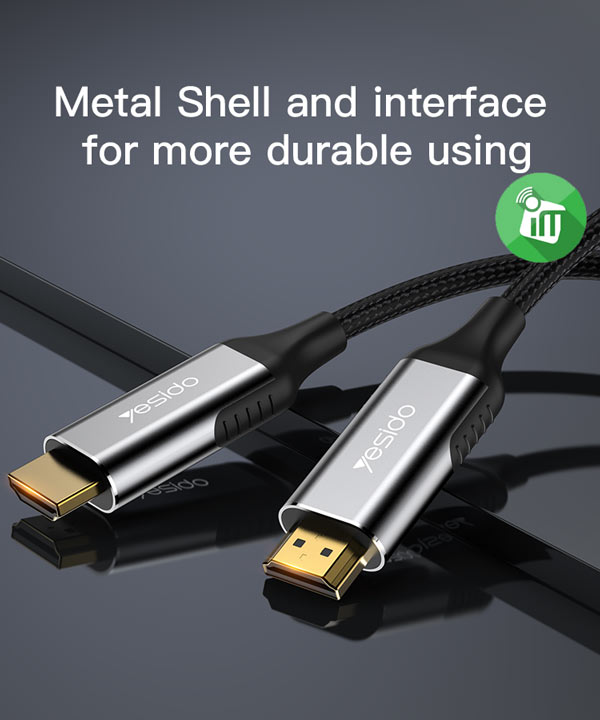 Yesido HM11 1.8M Crafted with triple shielded 32AWG copper conductors with gold-plated connectors, ensuring premium high-speed and flawless 4K Ultra HD technology signal transmission and the best image quality