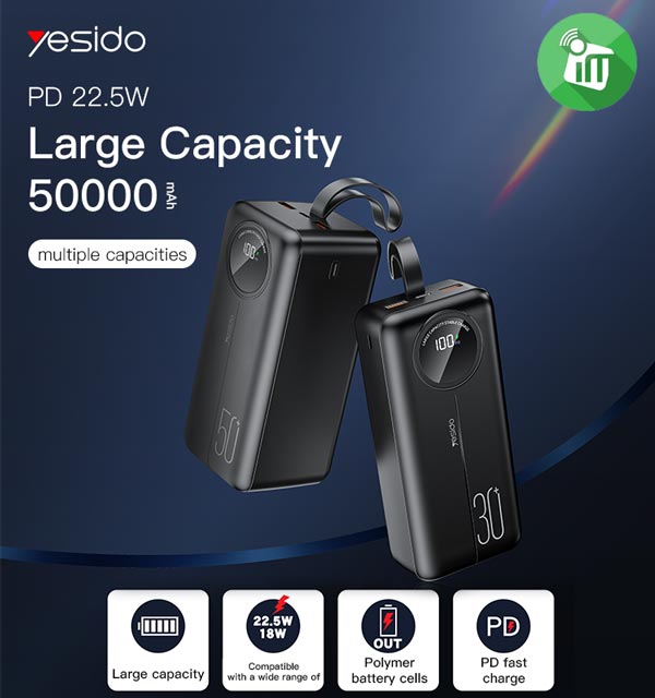 Yesido YP42 30000mAh Built-in safety protections against overheating, overcurrent, overcharging, and short-circuiting, offering worry-free charging for both you and your devices