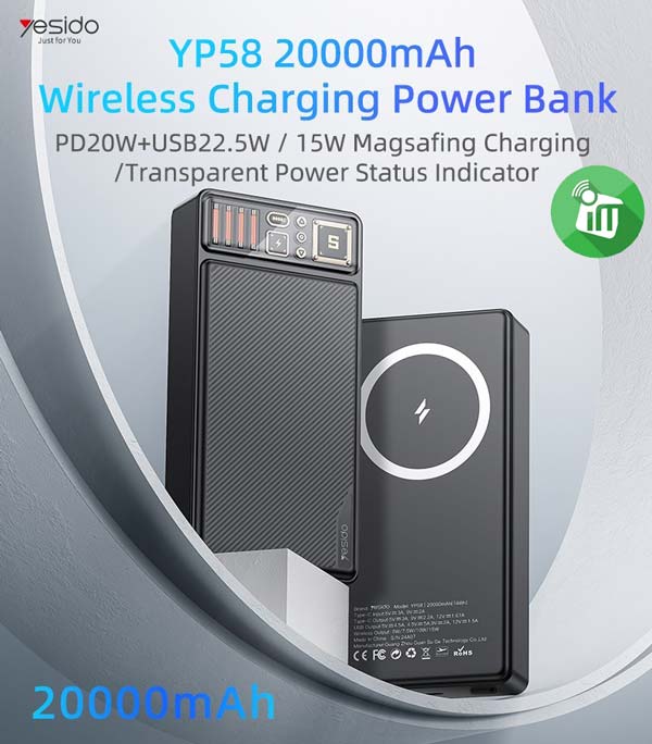 Yesido YP58 Magnetic Wireless 15W Power Bank 22.5W 20000mAh